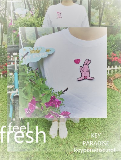 Embroidered “Relaxing Rabbit” cartoon on white long dress tee